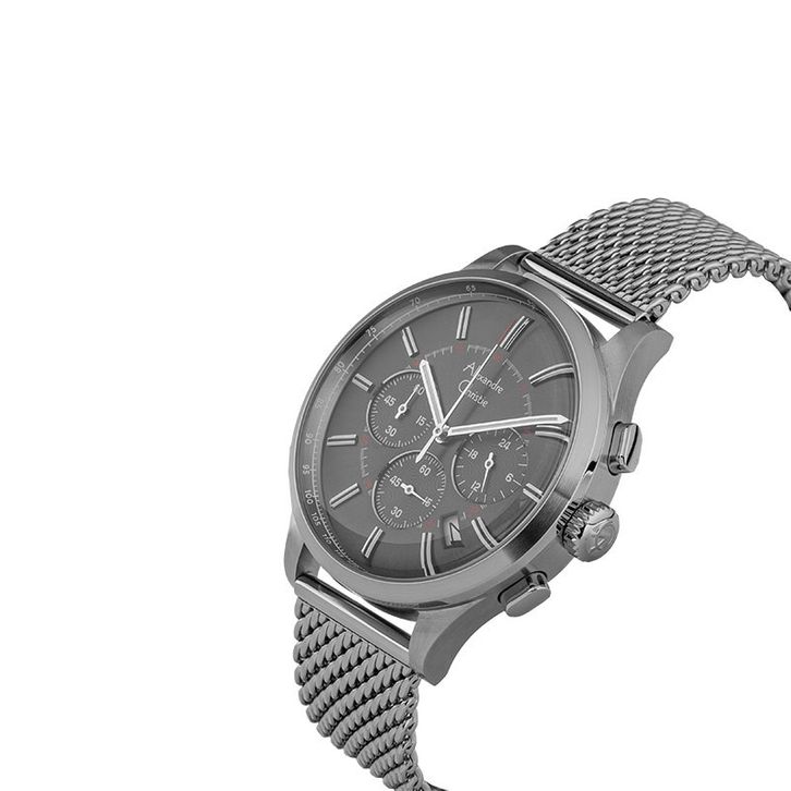Jam Tangan Pria Alexandre Christie Chronograph AC 6574 MC BSSBA Men Black Dial Mesh Stainless Steel Strap