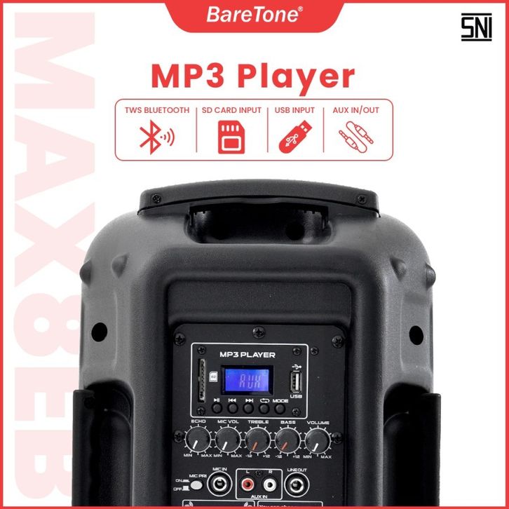 Baretone MAX08EB Speaker Portable Aktif MAX8EB 8 Inch TWS Bluetooth 2 Mic Wireless Original