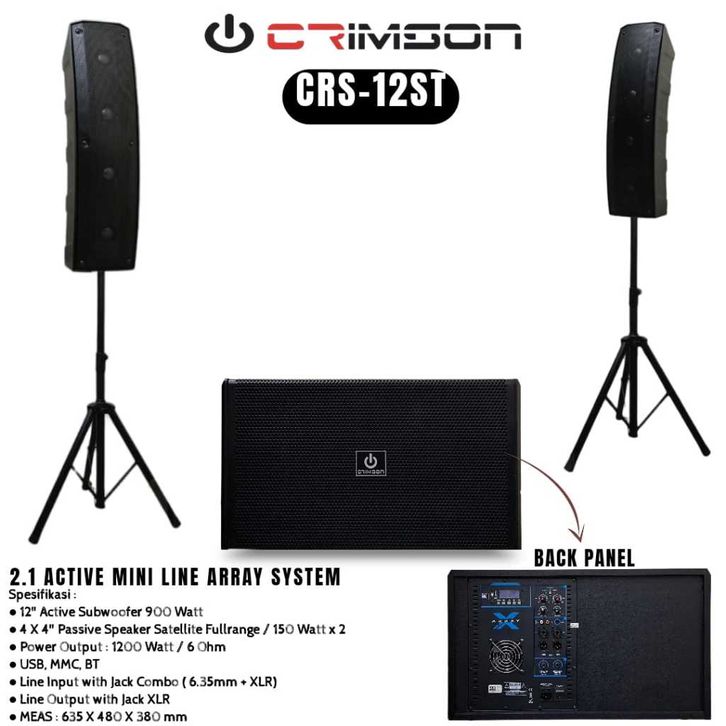 Paket Speaker Mini Line Array Aktif dan Subwoofer + Stand Tipod CRIMSON CRS-12 ST