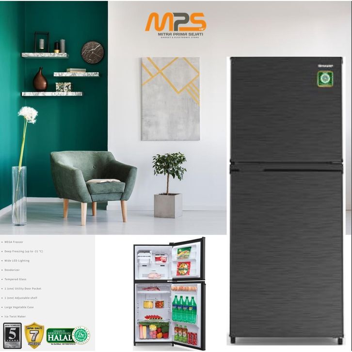 Kulkas 2 Pintu Sharp SJ 236 MN-HS - 205 L - Garansi Resmi Sharp