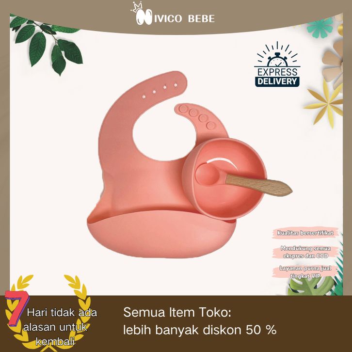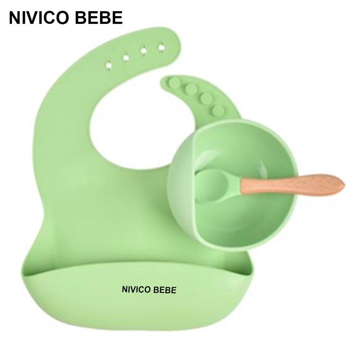 PROMO NIVICO BEBE Set Peralatan Makan Bayi Berbahan Silikon 3 Bagian (Mangkuk Hisap, Sendok Dan Bib) Peralatan