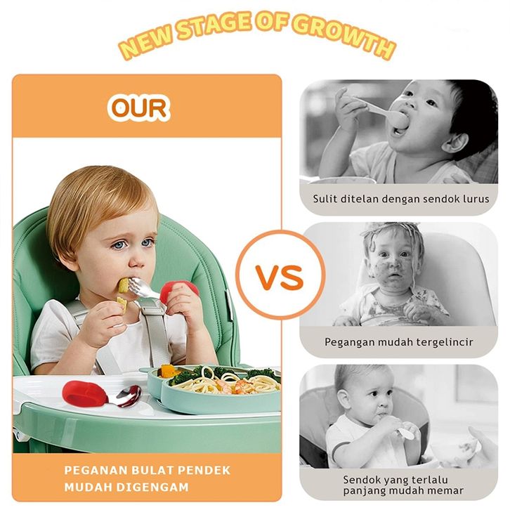 PROMO YUMSUN Sendok Belajar Makan Sendiri Bayi - Sendok Anak Stainless Steel SUS304 - Set Sendok Garpu Training