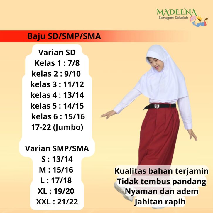 Promo Baju Kemeja Putih Seragam Sekolah SD Madrasah Hem Kerja Kantor Atasan Lengan Panjang Kain