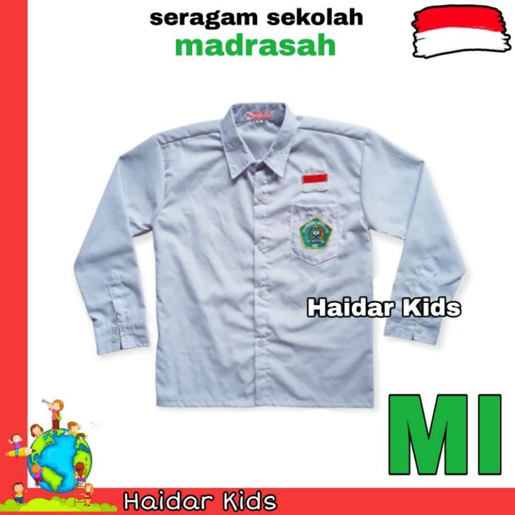 Promo Baju Seragam Sekolah MI Madrasah Ibtidaiyah Putih Lengan Panjang New