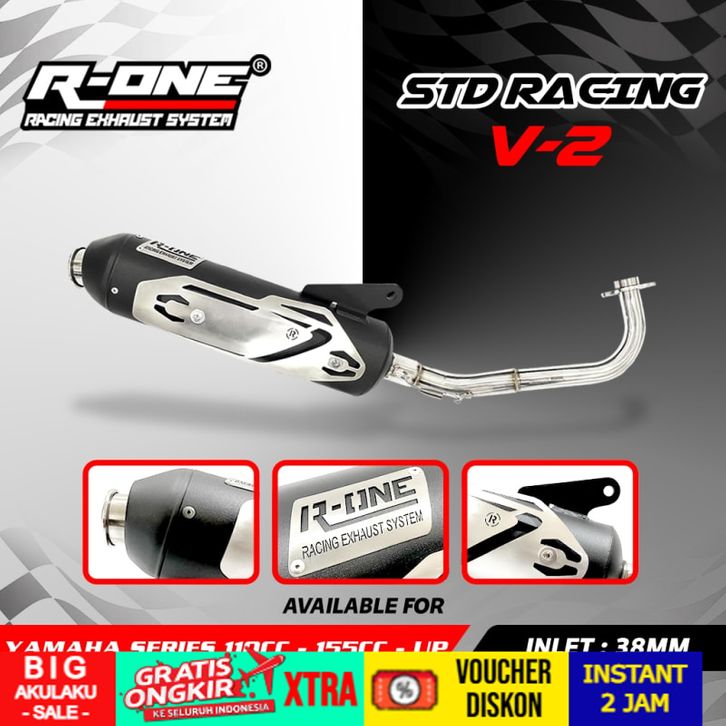 FLASH SALE 50% Knalpot R One Racing Muffler V2 STD Full Package untuk Yamaha Series