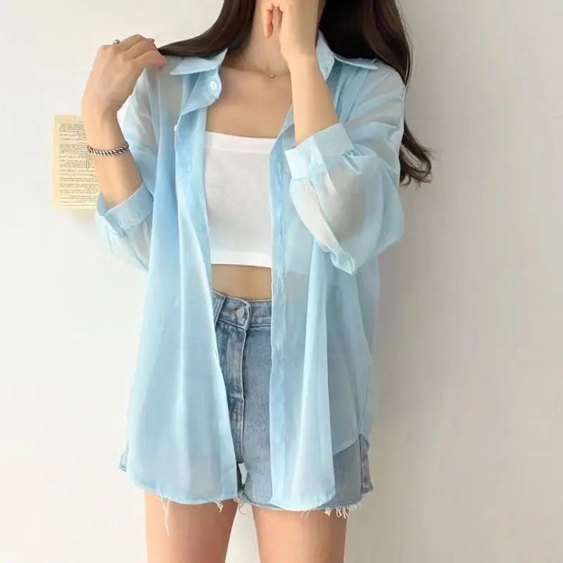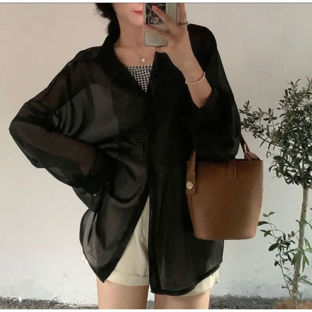 Basic id fashion kemeja oversize transparan korean style / kemeja wanita gaya korea kemeja model outer kekinian