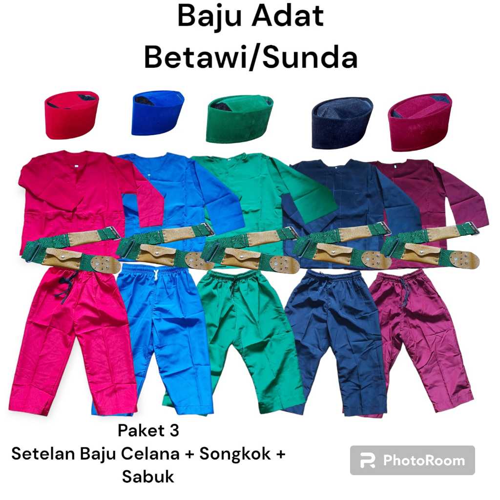 Baju Pangsi Betawi Dewasa Setelan Dapat Peci Dan Sabuk Habibie
