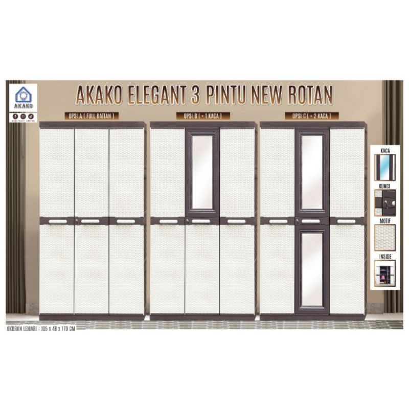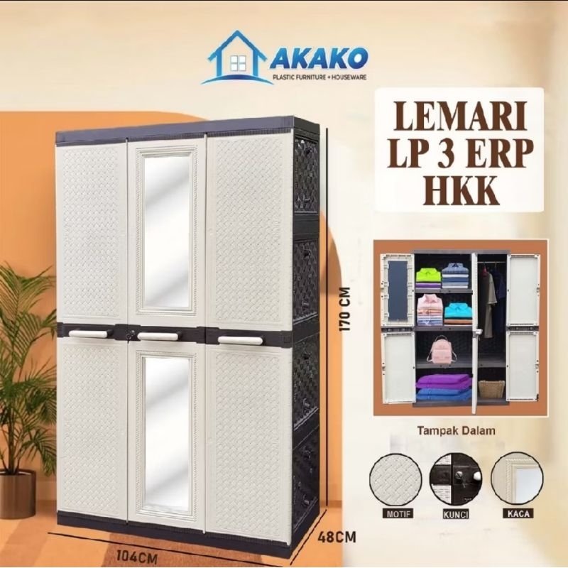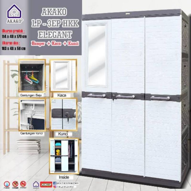Lemari 2025 - AKAKO - Lemari Gantung Jumbo Kaca + Kunci + Hanger motif Elegant ( NEW )