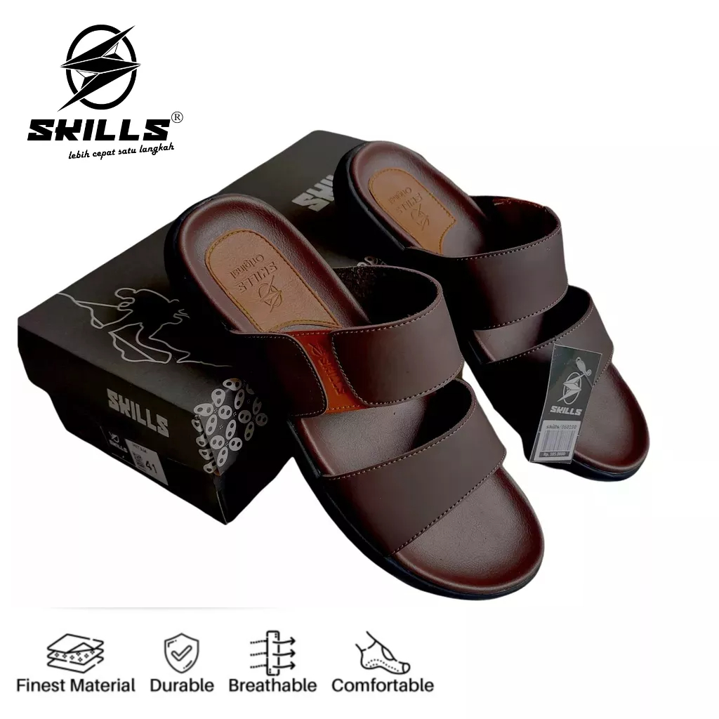 SKILLS Barqun Miguel - Sandal Pria Casual | Sandal Kulit | Sandal Slop | Strap Leather Premium