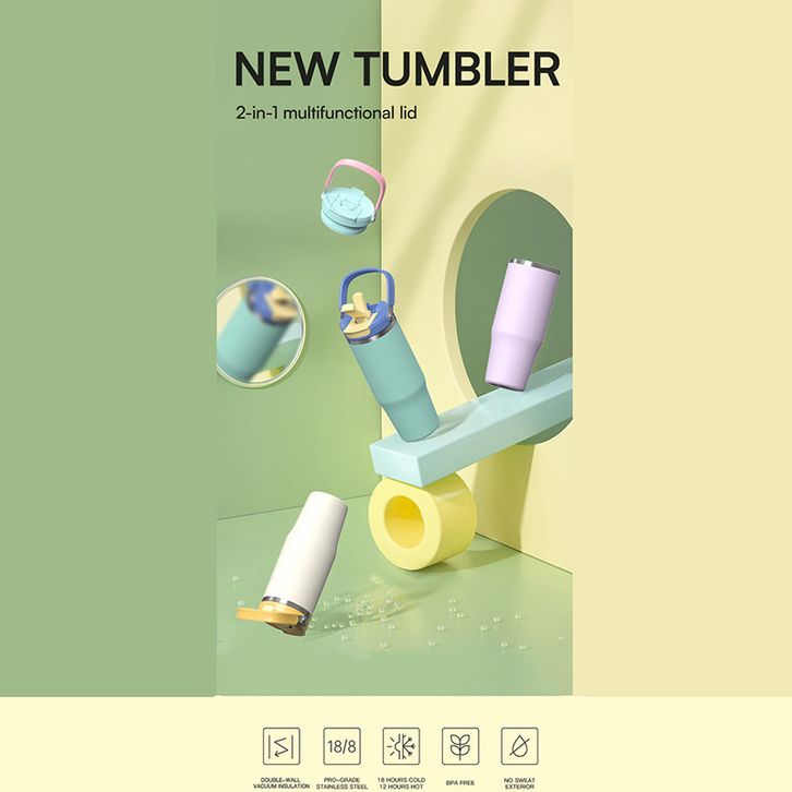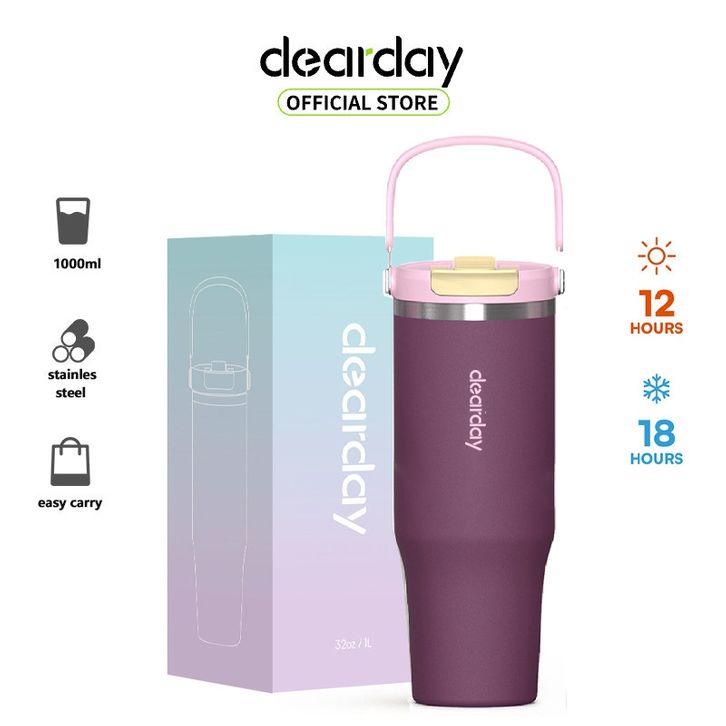 Tumbler Dearday Portable Stainless 1000 ML Thermos Cup Vacuum Insulated Purple