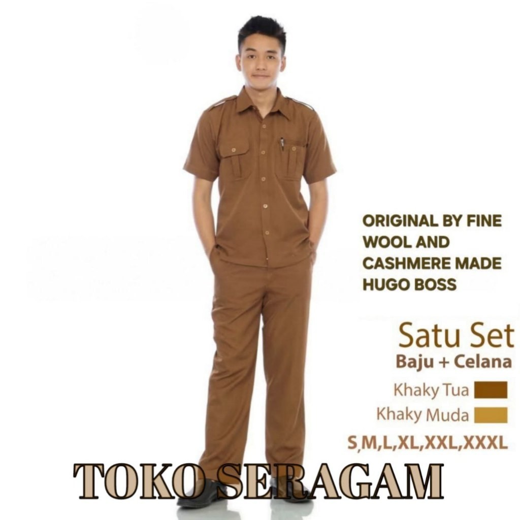 SET Seragam PNS Pemda Pria Seragam ASN Khaki SEMI WOOL PREMIUM Set Baju + Celana Baju Pdh Pegawai Negeri Lengan Pendek