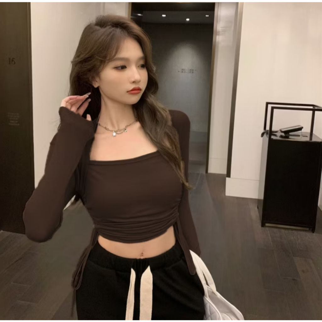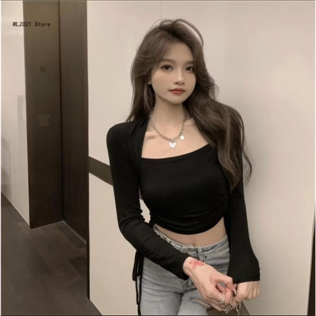 Crop Top Wanita Serut Samping Atasan Wanita - Kaos Wanita Lengan Panjang Fashion Street Style New / Crop Top Lengan Panjang