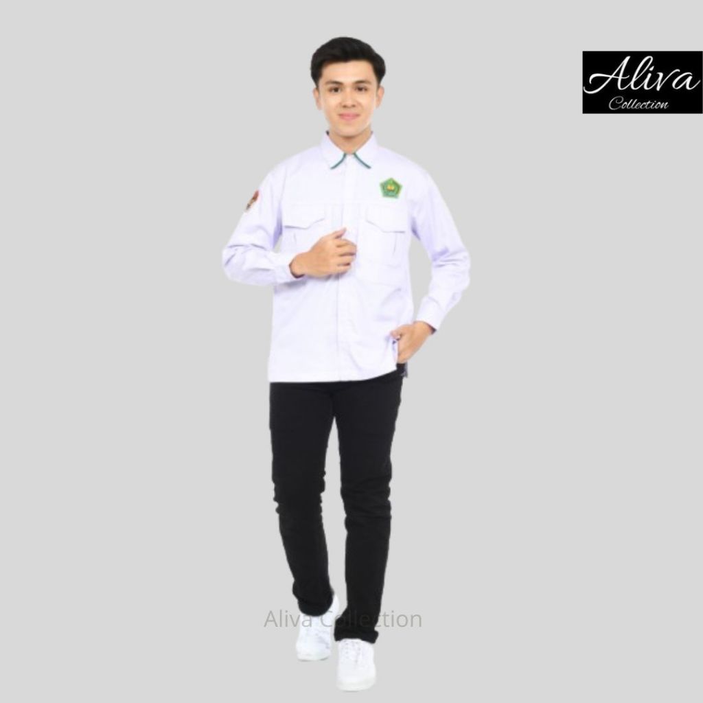 Seragam Dinas PDH Putih Kementrian Agama Kemeja Pria Kemenag Saku Zipper Lengan Panjang