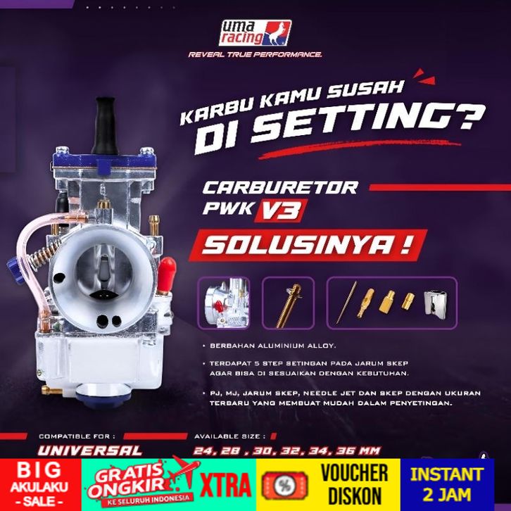 FLASH SALE 50% KARBURATOR UMA RACING KARBU PWK UMA RACING V3 24 28 30 32 34 36MM KARBU RACING UMA RACING ORIGINAL