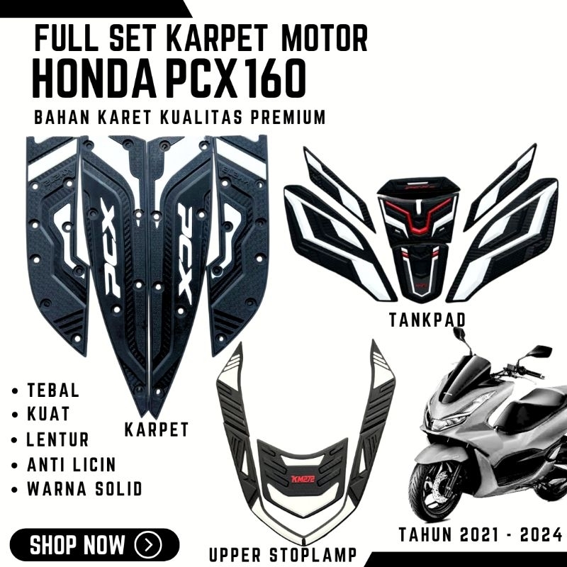 AKSESORIS FULL SET MOTOR PCX 160 TAHUN 2021 - 2025 ROADSYNC/ABS/CBS KARPET/TANKPAD/UPPER STOPLAMP
