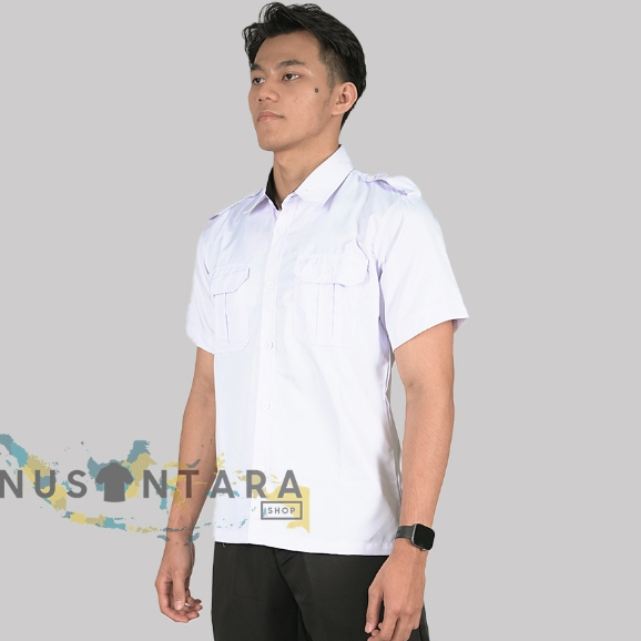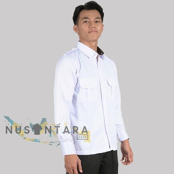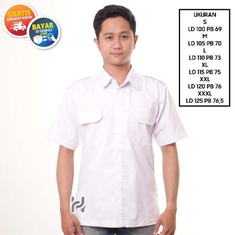 Kemeja Pdh Putih Pria Kerah Hitam Seragam Pns Pemda Putih Lengan Panjang dan Pendek