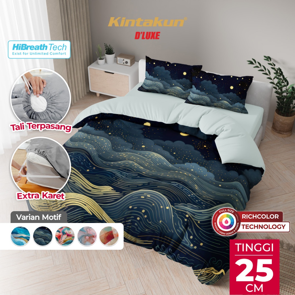 Kintakun Bed Cover Fitted 160 x 200 D'luxe Minimalis Aesthetic Microtex Anti Geser 25 Cm Multivarian Digital Printing