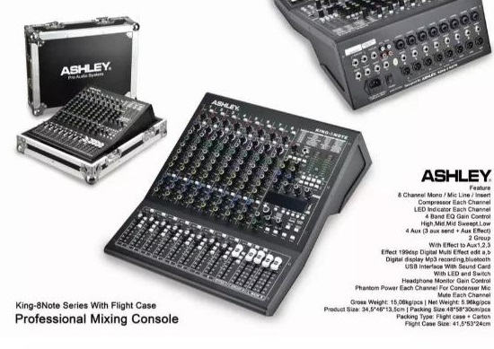 Mixer ASHLEY KING 8 NOTE | KING8NOTE 8 Channel Original + Hardcase