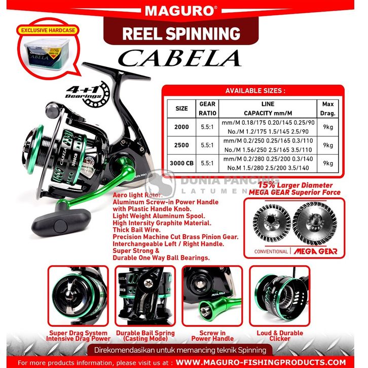 Reel Spinning Maguro CABELA 4+1 Ball Bearing | Mega Gear | Power Handle