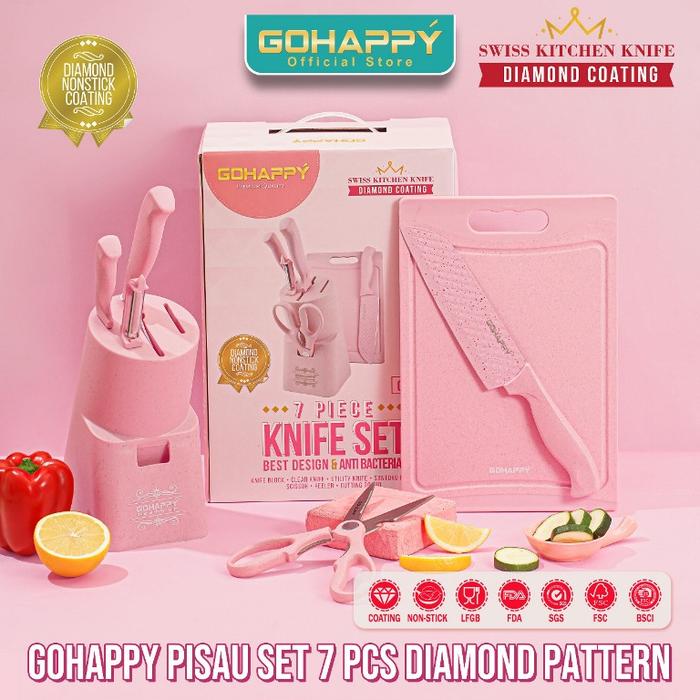 [SPECIAL PROMO] PISAU DIAMOND SET GOHAPPY GHX63 Marble anti bacterial knives baja buah Knife Stainless