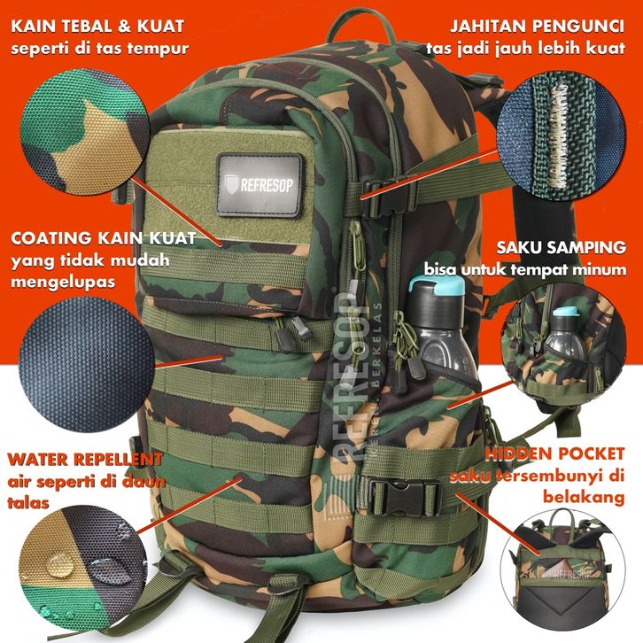 REFRESOP Original PX680 Tas Army Pria Backpack Ransel Tactical - Loreng Malvinas