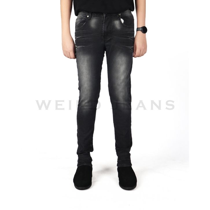 WEIRD JEANS - BALDWIN GREY - CELANA JEANS PANJANG PRIA SLIM FIT STRECH TANPA SOBEK POLOS WARNA ABU-ABU