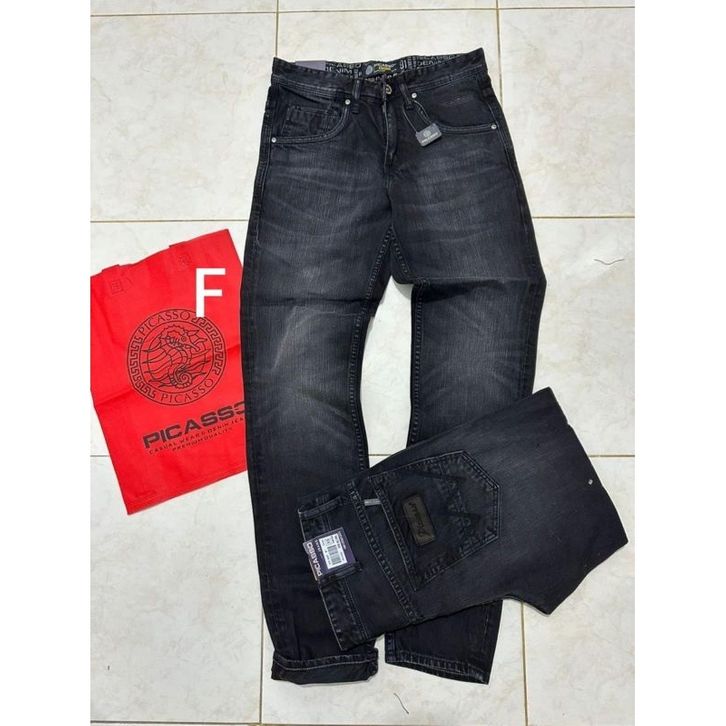[PICASSO W TIDAK KARET/NON STRETCH] CELANA JEANS PICASSO DENIM PANJANG PRIA/LAKI-LAKI COWOK SLIM-FIT/REGULAR GRATIS TOTE