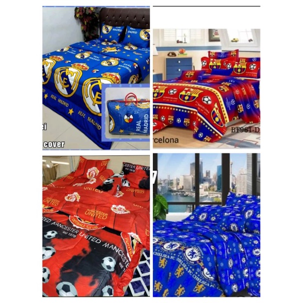 Bedcover set motif bola ukuran King Queen Single katun halus lembut