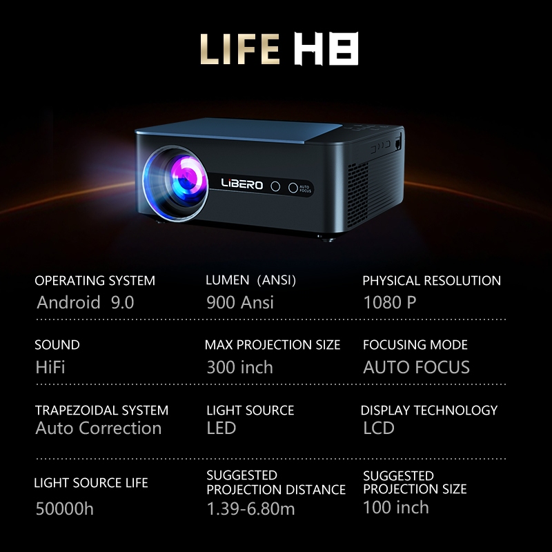 【LIBERO Proyektor】LIFE Series H8- 900 ANSI 1080P- Android 9 Smart Proyektor- Netflix Youtube GooglePlay- A3 Chip- 3D Aud