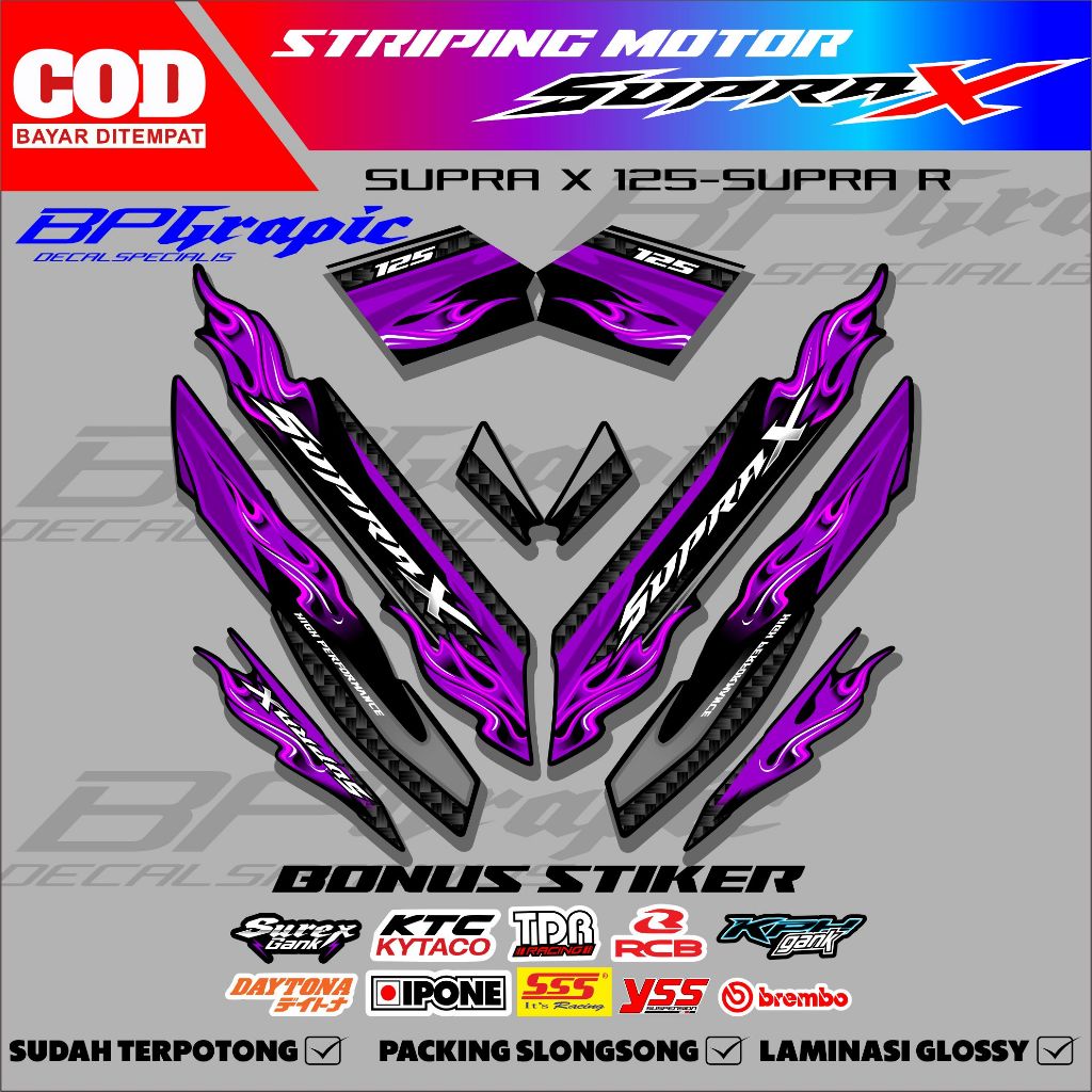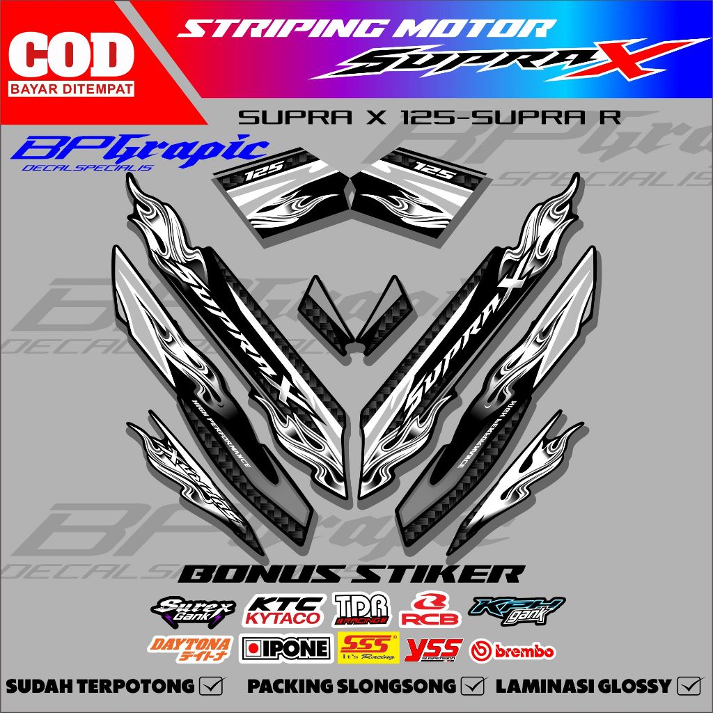[star]STRIPING STIKER VARIASI HONDA SUPRA X 125 KARBU 2008-2012 MOTIF API KARBON KPH