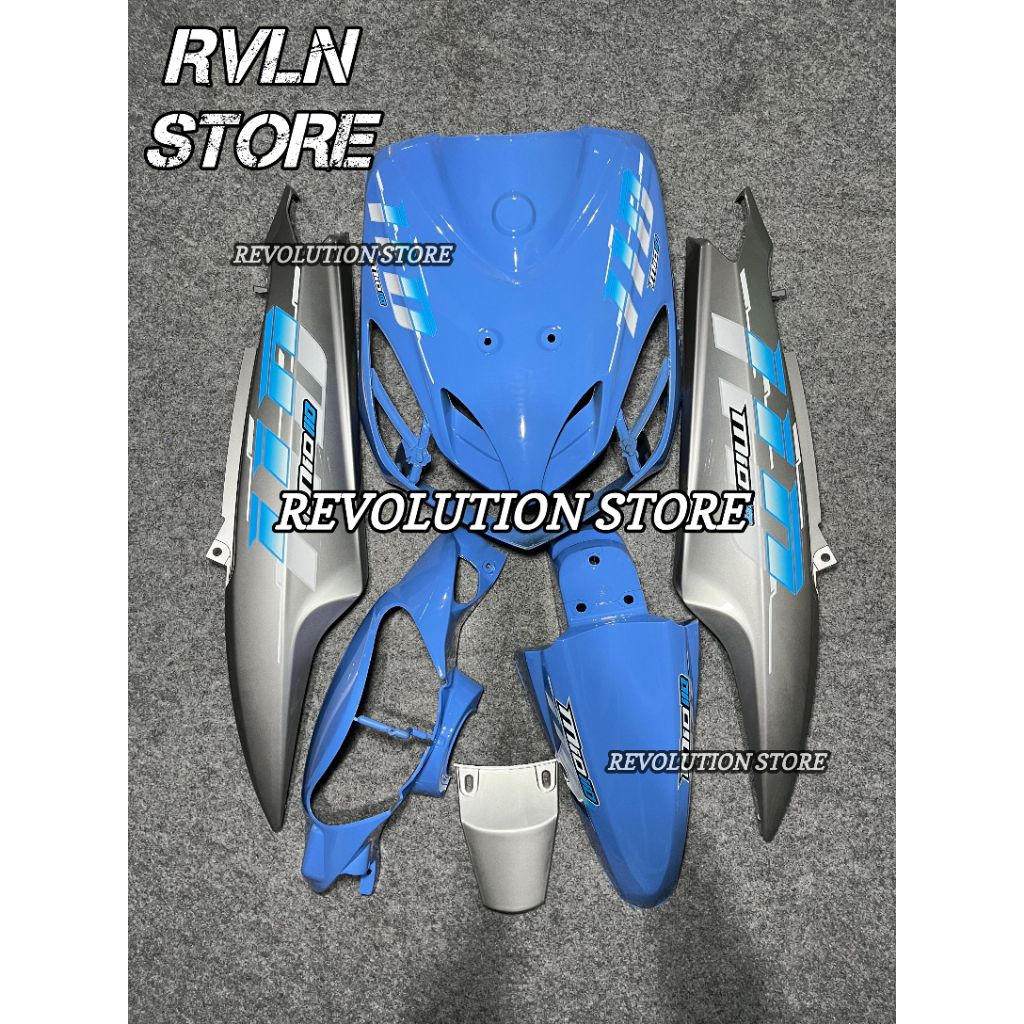 Cover body full set bodi halus Yamaha Mio smile ice blue mix grey Vietnam style plus striping