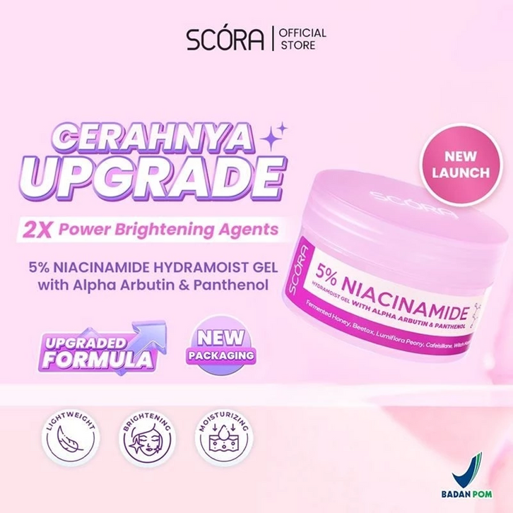 SCORA Paket Glowing Bebas Jerawat , Scora 5 % Niacinemade Hydramoist Ge-Scora Sheer Glow Tone up Cream 30gr- Scora Salic
