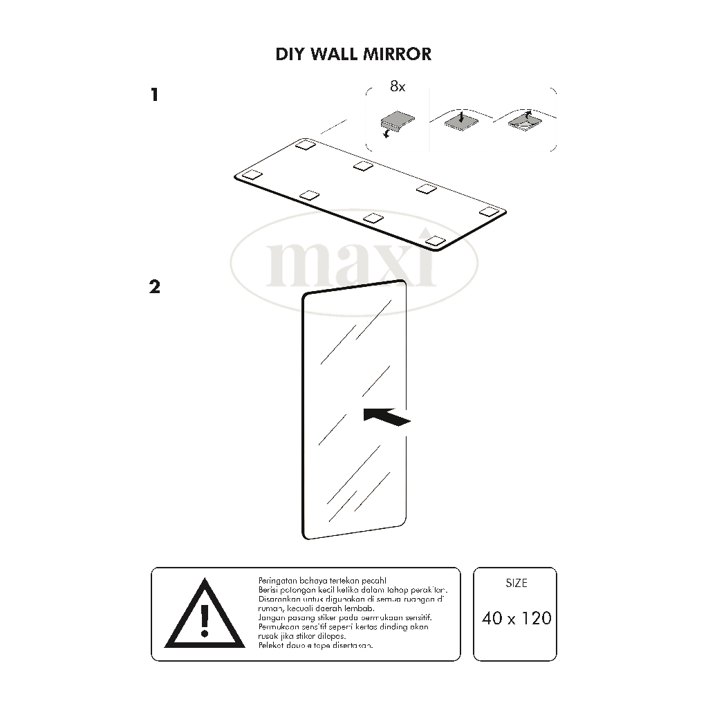 [MAXII] 40x120 cm - Cermin Tempel Dinding DROMMARE Kaca Plastik Tempel Wallpaper Kaca Kamar Mandi / Tidur Mirror Polycarbonate
