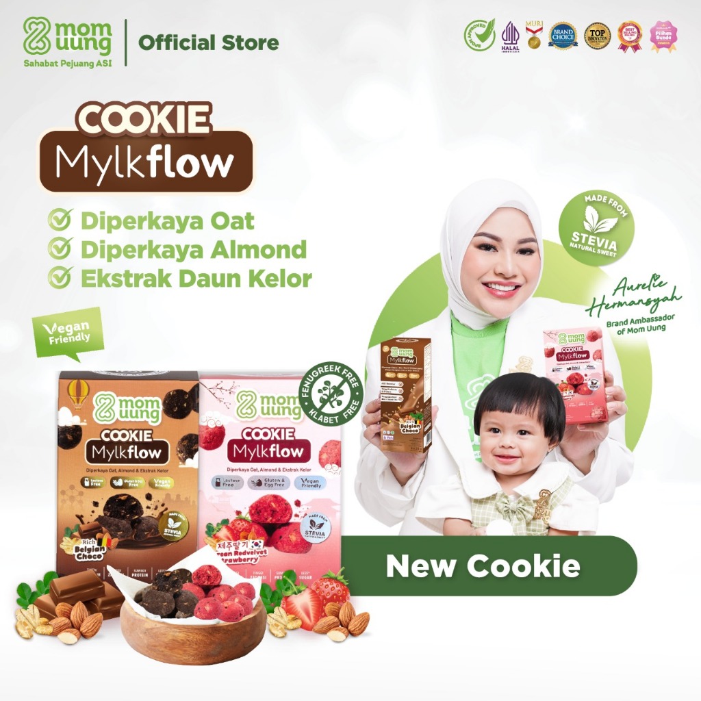 Mom Uung Cookie Mylkflow Asi Booster - 100 PERSEN Made From Stevia - Rich Belgian Chocolate - Korean Redvelvet Strawberry - Co