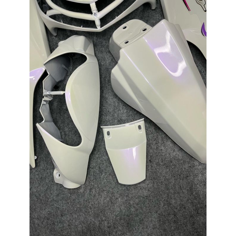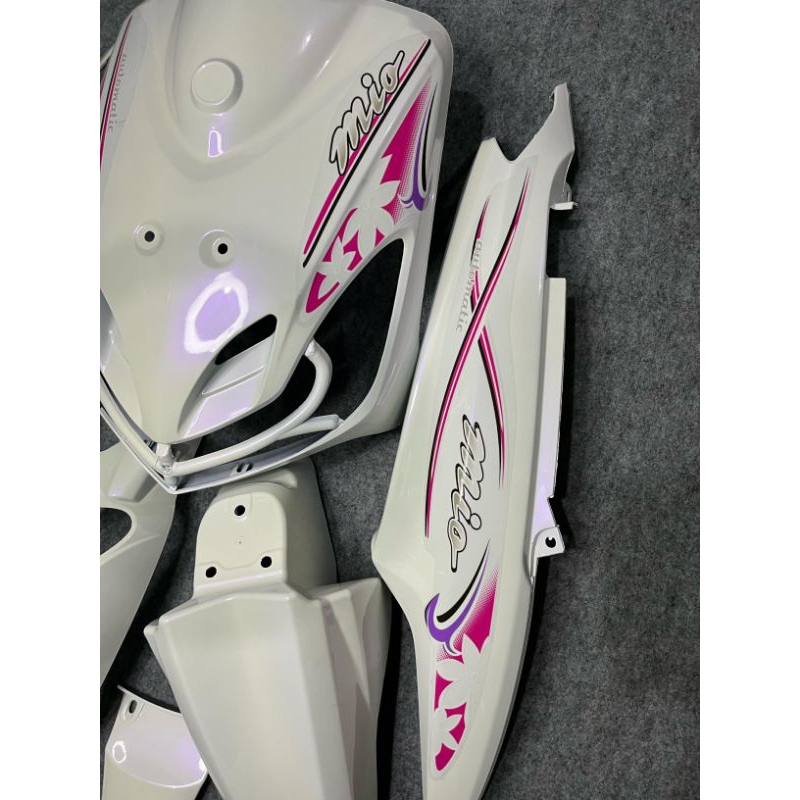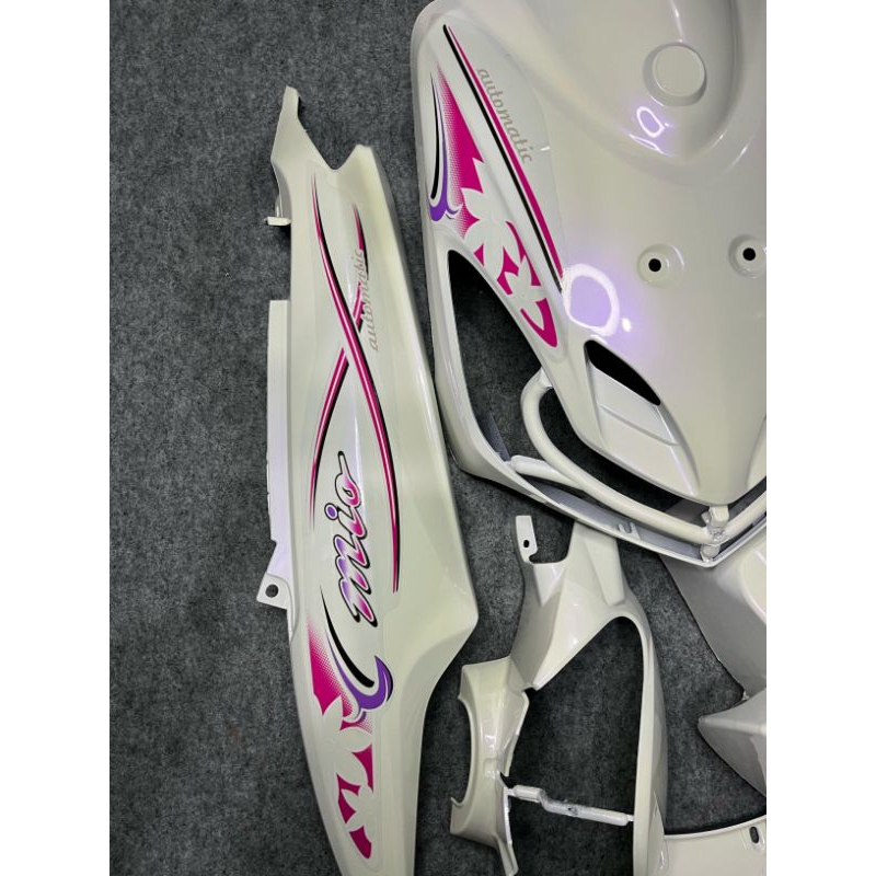 Cover ful body halus Yamaha Mio smile putih lembayung ungu striping bunga transparan - fullset body Mio smile putih