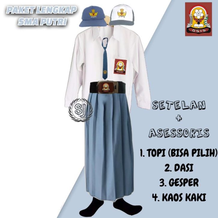 Promo seragam sekolah setelan baju dan rok rempel panjang SMA lengkap New