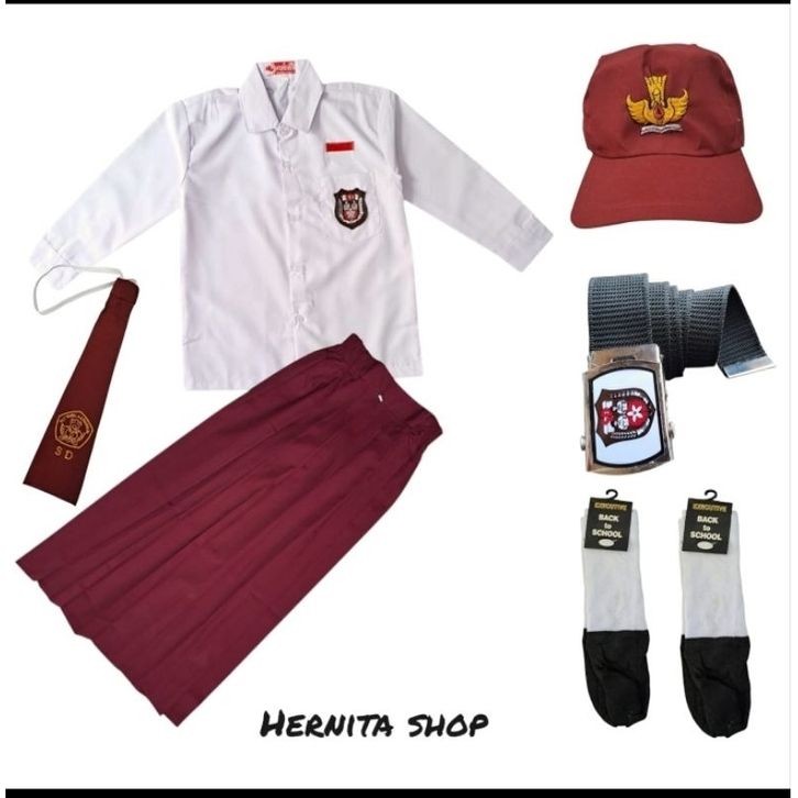 Promo seragam sekolah SD set lengkap baju lengan panjang rok panjang anak perempuan New