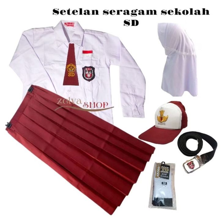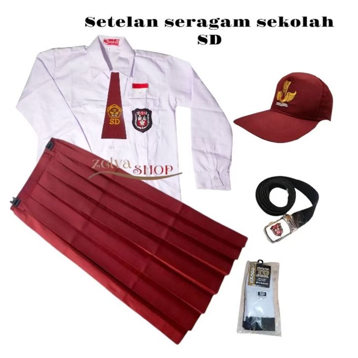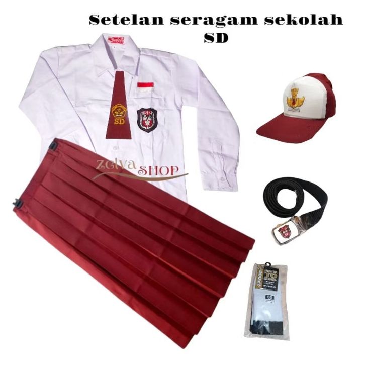 Promo Setelan seragam sekolah SD lengkap anak perempuan kelas 1-6 SD Set baju panjang SD rok panjang
