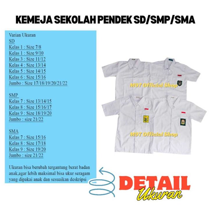 Promo Seragam Sekolah Baju Kemeja Atasan Sekolah SD SMP SMA Kemeja Putih Lengan PENDEK Bendera Logo
