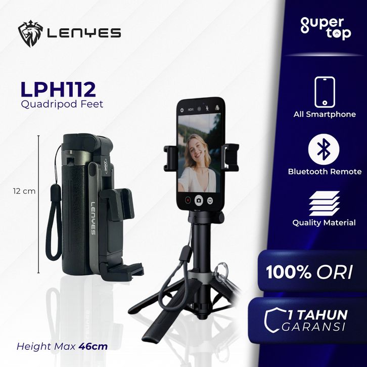 LENYES LPH112 Tongsis TriP00D 3in1 Remote Bluetooth Mini Hand9rip Selfie Vlog Stick 360 Degree Rotation Pocket HandSize