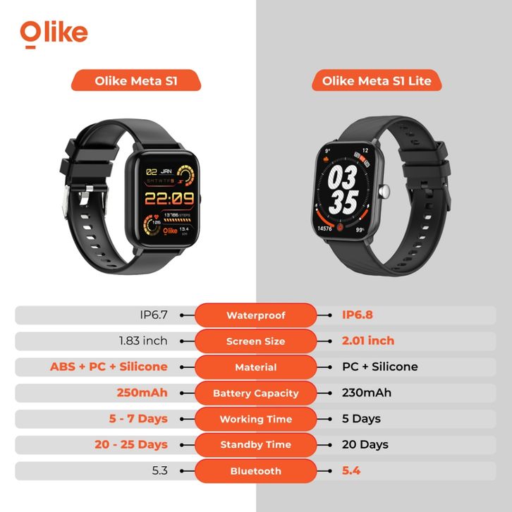 BEST SELLING OLIKE Smartwatch META S1 Lite HD Battery Up to 20 Day, Screen Custom Face, Waterproof IP68 | Smart watch B