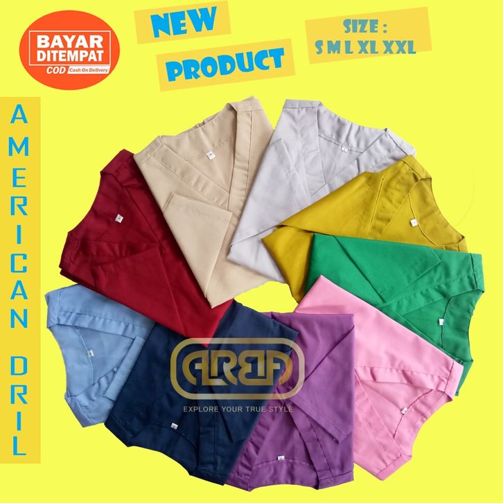 PROMO Baju OK oka Scrub Jaga Medis Seragam Perawat Lengan Pendek AMERICAN DRILL usemnl