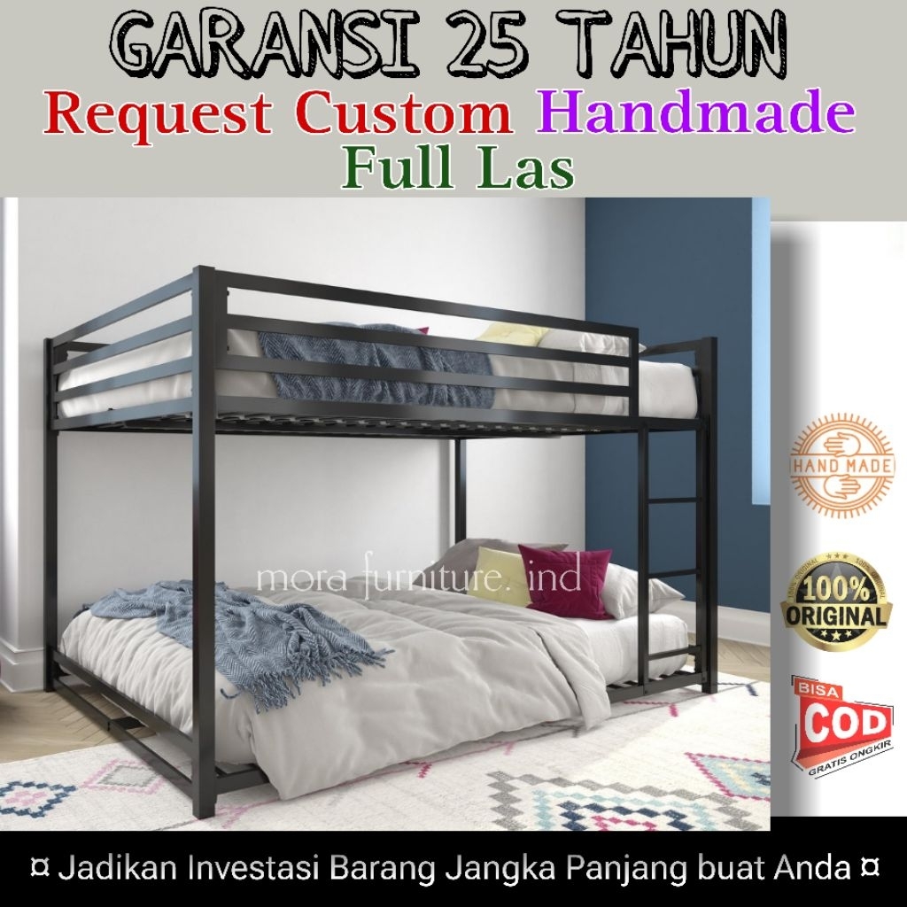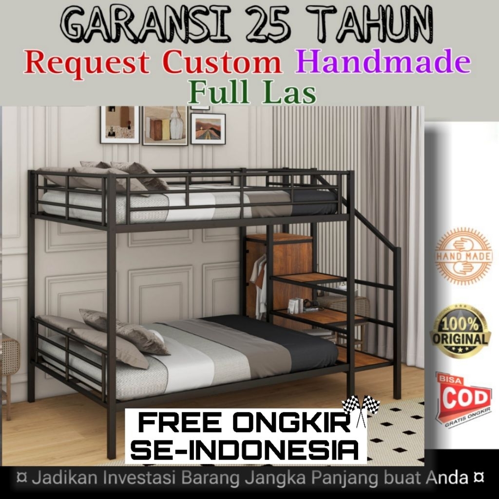 Ranjang Tingkat Full Besi Tebal Tahan 20 Tahun All Size - Dipan Divan Tingkat Anak Dewasa Metal Full over Full Bunk Bed