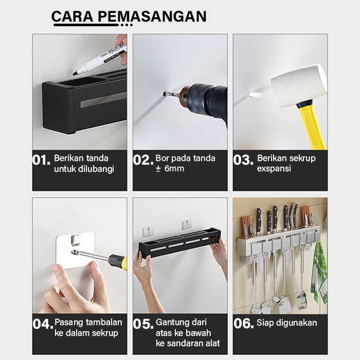 FREE ONGKIR GM Bear Rak Gantung Peralatan Dapur Pisau Stainless Steel 1365-Knives Holder