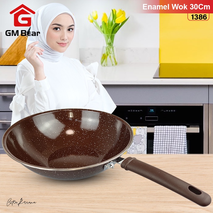 FREE ONGKIR GM Bear Panci Penggorengan Enamel -Wok Pan Enamel Brown