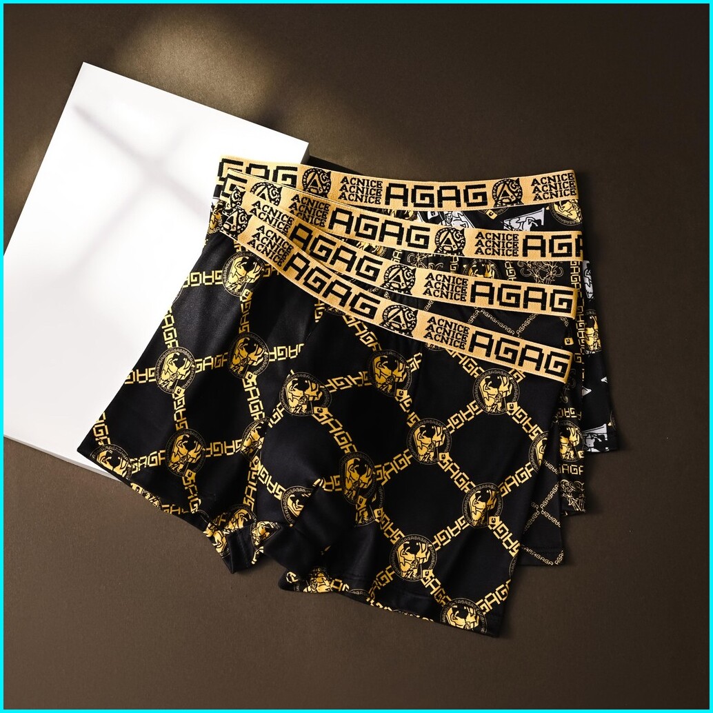 Paket 4 Pcs Celana Dalam Pria Boxer Motif Agag Lembut Adem Poliester Spandek Cdp211