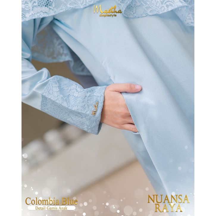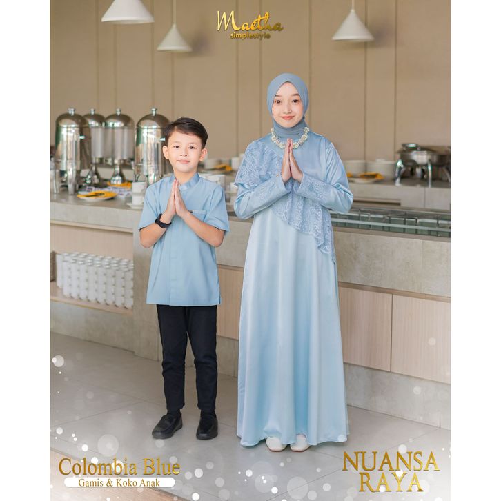 GRATIS ONGKIR Maetha - Sarimbit Keluarga Lebaran / Gamis Koko Couple / Nuansa Raya Series Colombia Blue KUALITAS PREMIUM