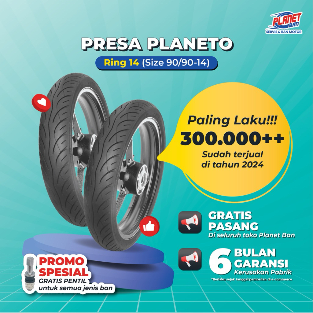 Ban Motor Ring 14 - 90/90 Presa Planeto TUBELESS (Ban Motor Lexi 125, Lexi 155, Beat, Scoopy (Old), Genio, Vario 125, Vario 110)