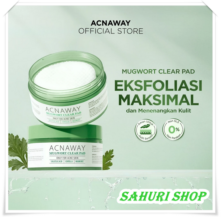 ACNAWAY Mugwort Clear Pad – Kapas Eksfoliasi Lembut Angkat Komedo, Minyak & Sel Kulit Mati