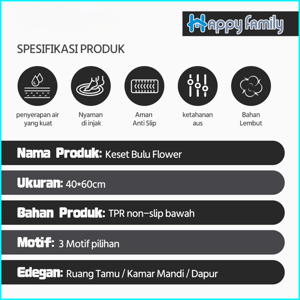 Hf Keset Bulu Motif Bunga Anti Slip Uk 40 X 60cm House Mat Flowers Keset Modern Anti Slip Flower